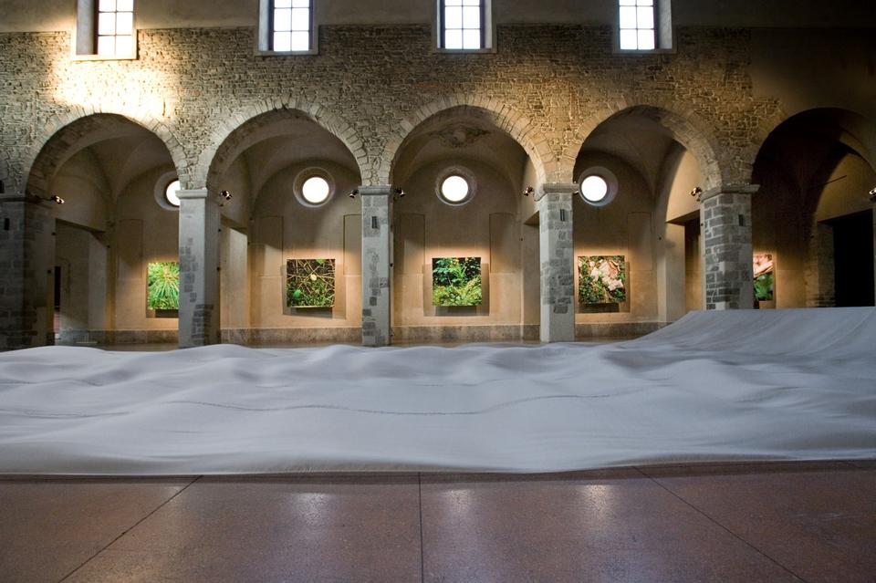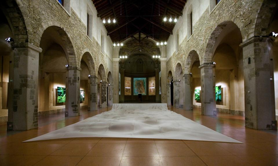 Quando ho sentito che l'esposizione, che era parte del mio impegno a svolgere un seminario applicativo alla Fondazione Antonio Ratti, si sarebbe svolta s San Francesco, ho raccolto informazioni sul sito, apprendendo che si tratta di una chiesa romanica con affreschi del Diciassettesimo secolo gravemente danneggiati. Gli affreschi raffigurano scene bibliche, come l'Ultima Cena, e scene della vita di San Francesco.