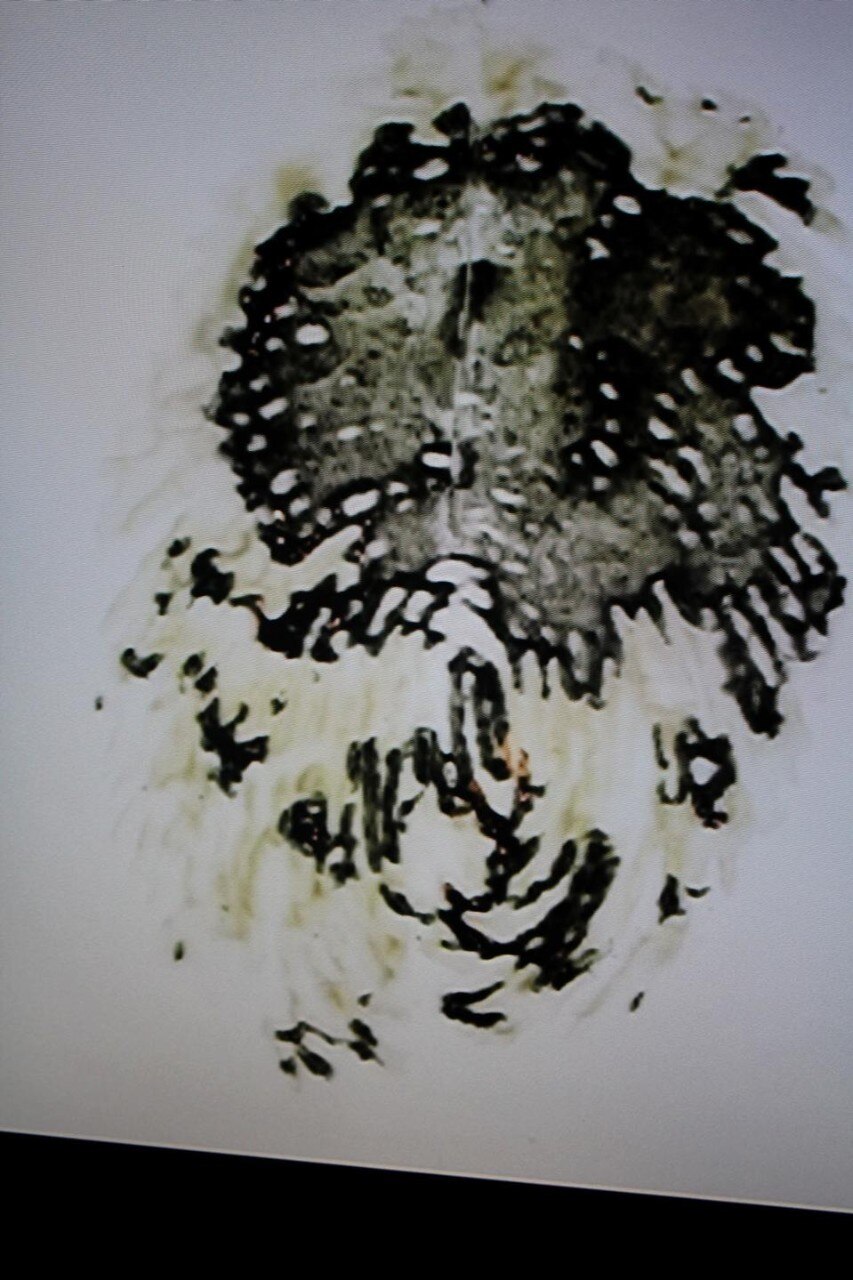 La situazione di tumulto e disordine evocata al pianterreno passa qui a una dimensione sociale, alla quale fanno da contrappunto delle rappresentazioni di impronte digitali in grande scala, un chiaro rimando alla centralità dell'essere umano.