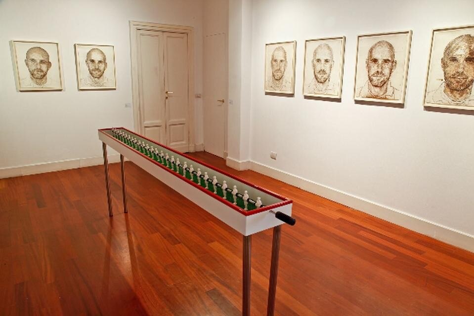 Le opere in mostra per la personale "Beside, each, other", molte delle quali realizzate appositamente per l'occasione, rimandano tutte, con linguaggi diversi, alla visione che Weinstrein ha della condizione dell'uomo moderno, sempre alle prese con la propria fragilità, come nella nuova versione di Anthem: un tavolo da calcio balilla sviluppato in lunghezza, con giocatori realizzati in fragile porcellana e disposti tutti su una sola fila, ulteriore espressione di vulnerabilità. Anche i ritratti dell'artista realizzati in fibra di acciaio comunicano un senso di precarietà, con le linee del viso come corrose, non nette, che si ripetono uguali eppure sempre differenti nella serie esposta.