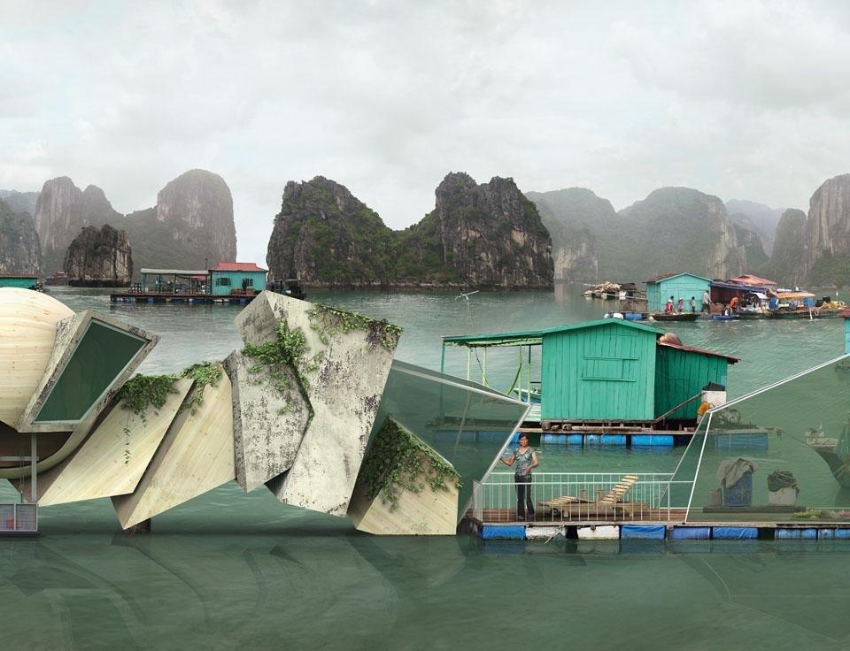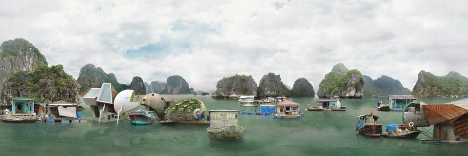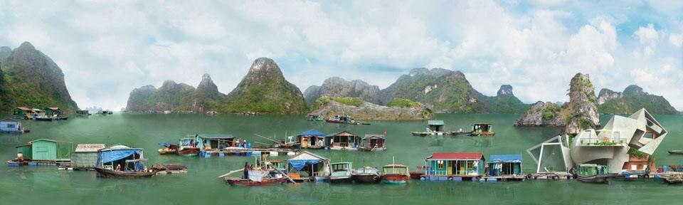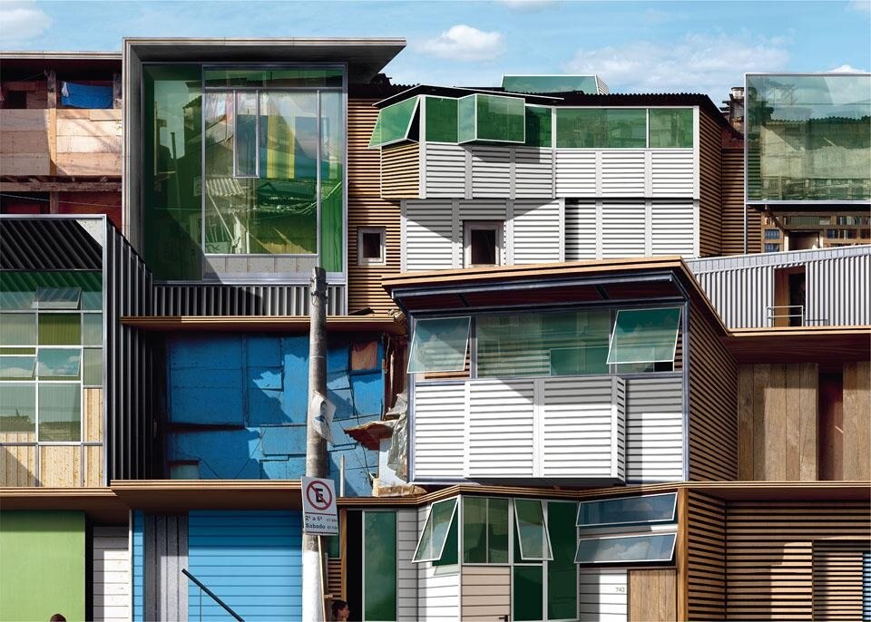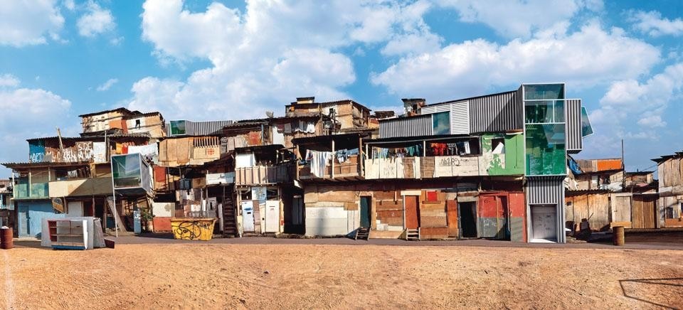 Fra una parete di lamiera e un container, fra una baracca e un divisorio in legno marcito, González inserisce moduli architettonici di riconoscibile stile contemporaneo, in vetro e metallo, geometrici ed essenziali.