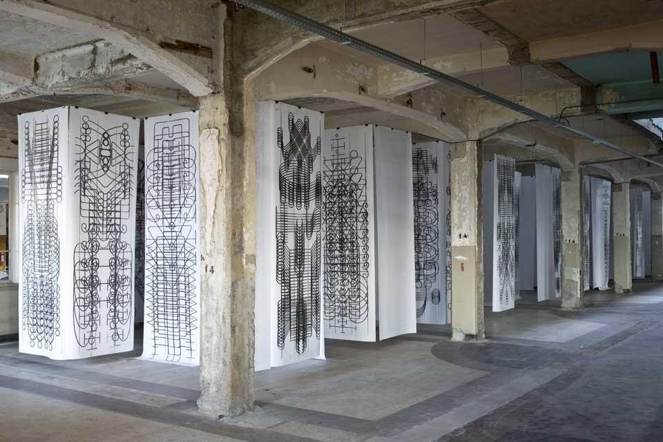 La mostra s'innesta sul luogo, vi si radica profondamente; l'energia della memoria circola nello spazio così fortemente connotato del Waterschei.