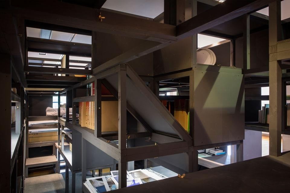 È un interrogativo noto, una certezza ignota. Voglio dire che è sicuro che, dopo Manifesta 9, l'installazione cambierà e migrerà nell'ambito della sede salendo al primo piano, per diventare qui una nuova struttura di sviluppo, di produzione e di documentazione. Quindi, la sarà smontata e ritornerà alla condizione di particelle elementari prive di forma. Si vaporizzerà. Al primo piano, gli elementi saranno rimontati per tornare a dare forma a nuove entità. Che cosa diventeranno di preciso queste entità ancora non lo sappiamo. Sarà oggetto di elaborazione insieme con il FLACC. In occasione di questo sviluppo, stiamo anche redigendo, insieme con un membro del comitato scientifico del FLACC, il quadro teorico del modo in cui l'istituzione potrà operare in futuro usando la Verbandkammer. È un lavoro appassionante perché siamo in grado di sviluppare tanto l'inquadramento fisico quanto quello materiale. Quindi, possiamo cucire i due aspetti formando un'entità senza soluzione di continuità. Non ci interessa però qualcosa di completamente funzionale ed efficiente quanto qualcosa di più conflittuale, provocatorio e sorprendente. La Verbandkammer nella sua seconda formulazione non riprenderà la stessa esatta forma che aveva durante Manifesta 9. L'installazione non è dotata di una forma finale o di un fine predefinito: è concepita come un sistema aperto disponibile, che può essere alterato o ripreso da futuri artisti residenti oltre che dall'istituzione stessa. In parallelo con l'istituzione che la ospita è costantemente in fieri.