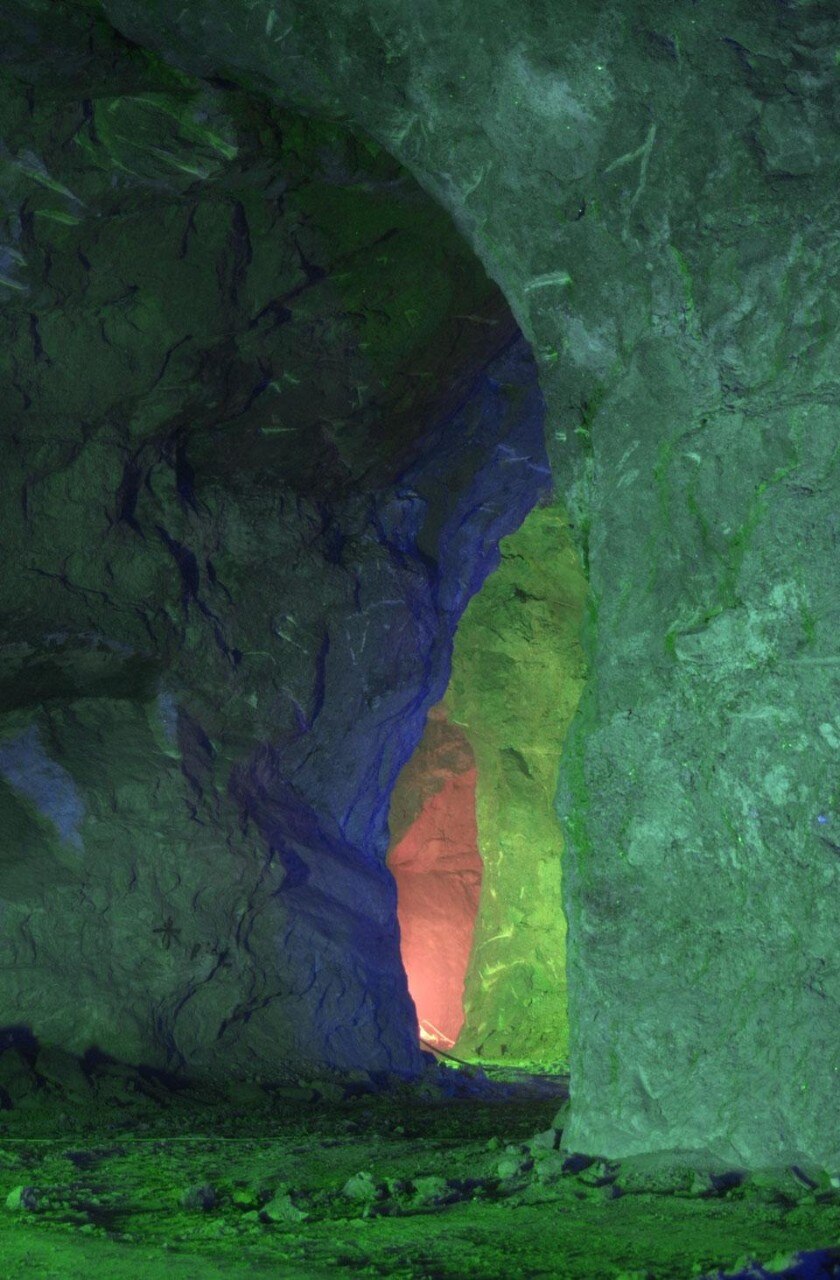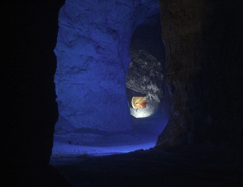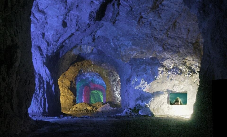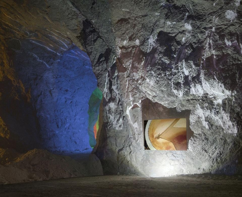 A Mark Cooper, a una prima perlustrazione per valutare la possibilità di esposizione al quinto livello ipogeo, si è presentato un paesaggio lunare, labirintico e monumentale, con grandi volte sostenute da imponenti pilastri rimasti dalla sottrazione della materia prima e lasciati a sorreggere le gallerie sovrastanti: colonne dalla superficie irregolare, che il lavoro delle ruspe ha reso delle opere scultoree.