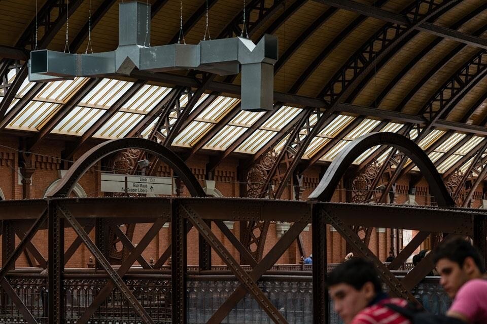 In apertura: Charlotte Posenenske, <i>Square Tubes</i>, vista dell'installazione alla Estação da Luz. Qui sopra: Leandro Tartaglia, <i>Todo en su mente. Viaje en dos actos</i> (“All in the mind. Journey in two acts”), audio tour organizzato dal padiglione della Biennale al Parque de Ibirapuera fino alla cappella Morumbi