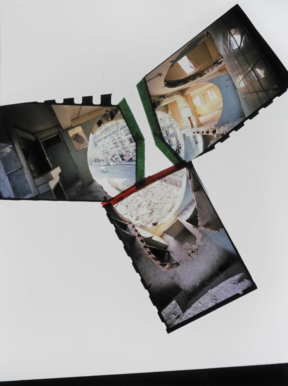 Le splendide fotografie e i reperti di anarchitettura esposti e realizzati da Gordon Matta-Clark prima della sua morte (oramai più di 35 anni fa) rimangono integri e potenti così come tutto il suo pensiero decostruttivista. Didier Faustino, con il suo intervento in galleria, opera per riattivarne le pratiche manipolative.