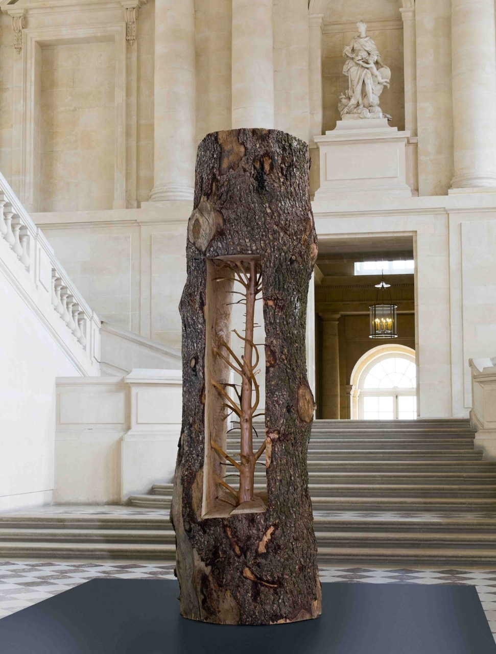 Giuseppe Penone, in stato di grazia, sfiora appena l’edificio con una stanza profumata dove “respirare” l’ombra dai delicati bronzi e con le pareti in foglia di tè, facendoci dimenticare i recenti passaggi di Murakami, Koons e Vasconcelos. Il loro si rivela, ancor più un inutile sfarzo e sforzo, quando una bellissima e difficile mostra cancella ogni finta relazione site-specific in un luogo così sublime. Versailles, diciamolo, è autosufficiente, così carica di cultura e natura specifiche, difficili da preservare, figuriamoci da addomesticare con l’insulsa stagionalità del contemporaneo.