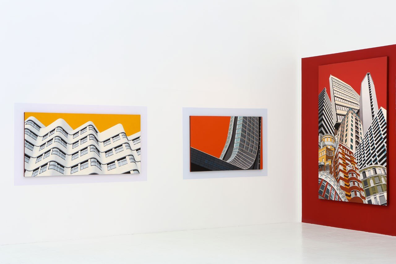Saltando di scala con naturale fluidità, Petrus lavora quindi su un doppio binario: rappresentare l’edificio intero e i suoi dettagli, spesso ritagliati e ricomposti in una visione multipla e seriale.