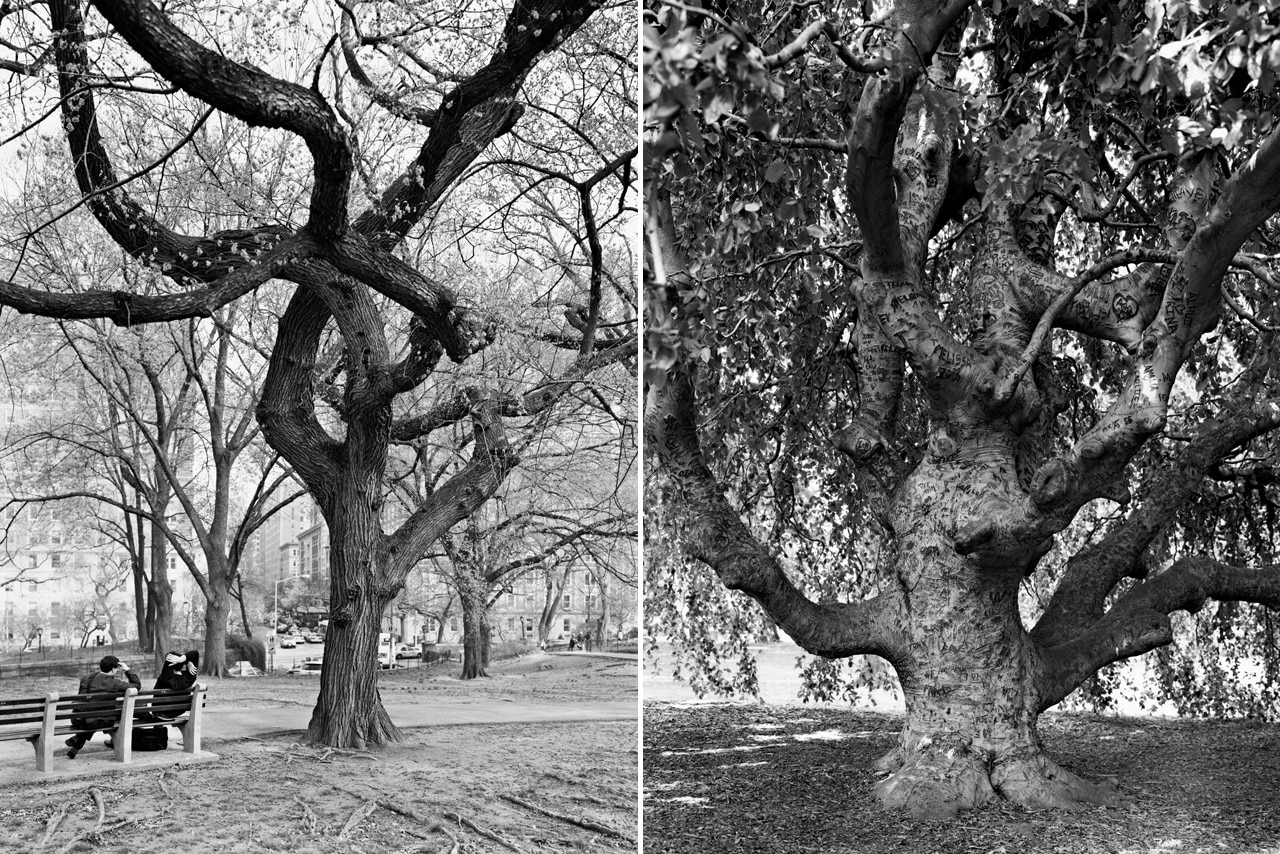 Queste fotografie in bianco e nero immortalano la maestosità, la resistenza e la potenza di alcuni alberi, cresciuti a New York e radicati nei parchi, nei centri commerciali, giardini, cimiteri, marciapiedi e spesso adattatisi agli spazi circostanti sfidando una chissà quale legge fisica. Il premio Pictet 2011, nonostante fosse nella sua città natale, ha trascorso quasi due anni viaggiando attraverso cinque distretti della Grande Mela alla ricerca di forme inusuali, spesso ritornando nei luoghi a seconda di temperature e stagioni diverse, alla ricerca di quella natura che l’architettura urbana spesso nasconde.