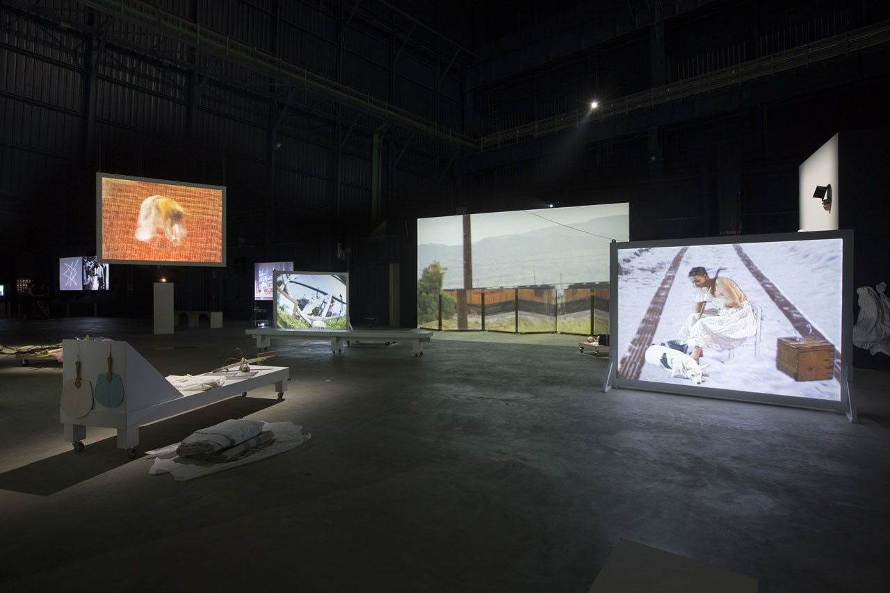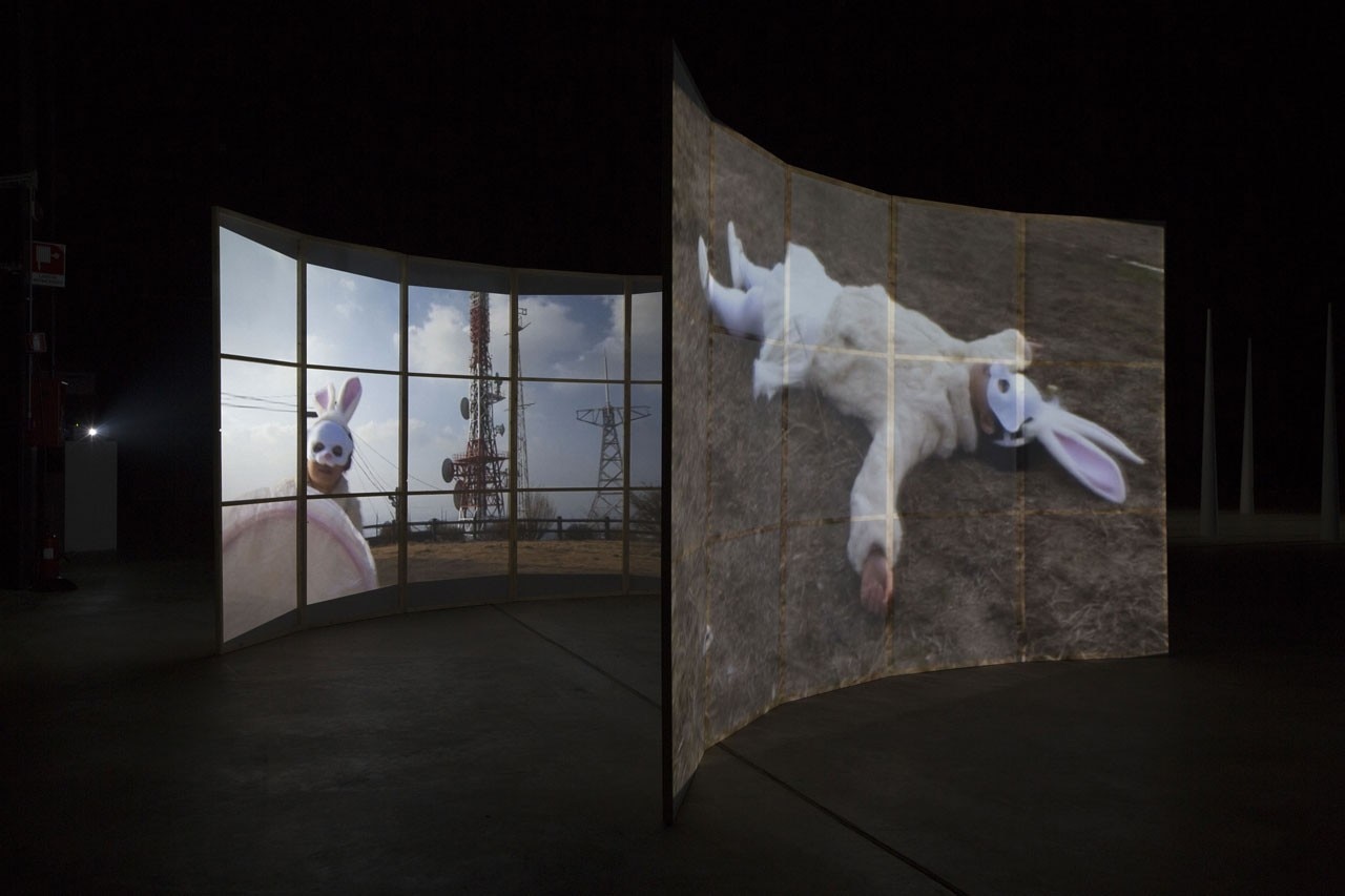 A fare da baricentro mobile di questa passeggiata troppo lunga per visitatori occasionali è Lines in the Sand (2002), un’installazione tentacolare e caleidoscopica, che rappresenta una deriva, un punto di non ritorno (dall’espressione inglese “to draw a line in the sand”). “Tutti noi conosciamo la storia di Elena di Troia”, recita la voce narrante, “ma solo alcuni l’hanno seguita in Egitto. Come vi è giunta?” L’opera rimestola con dovizia di dettagli una leggenda risalente alla notte dei tempi (con protagonisti un re, una regina e un toro di nome Bianche-corna) con i saggi della poetessa imagista Hilda Doolittle, Tribute to Freud (1956) ed Elena in Egitto (1961), in cui si afferma che Elena non giunse mai a Troia e che greci e troiani combatterono, in realtà, per un surrogato, un fantasma, un’illusione.