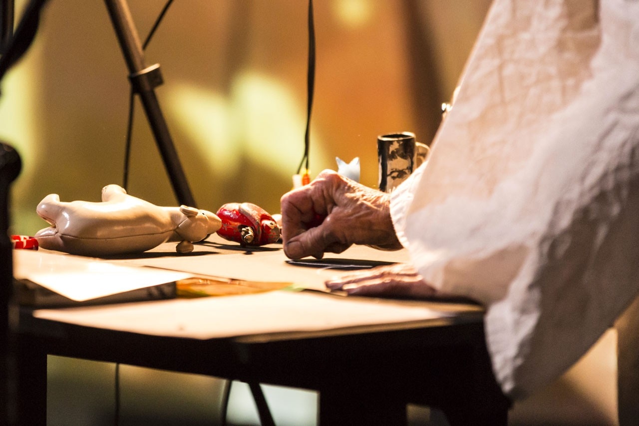 Joan Jonas trotta da un’opera all’altra, nelle sue diverse età, come una cavallerizza da circo, per poi volatizzarsi all’improvviso, come Alice attraverso lo specchio.