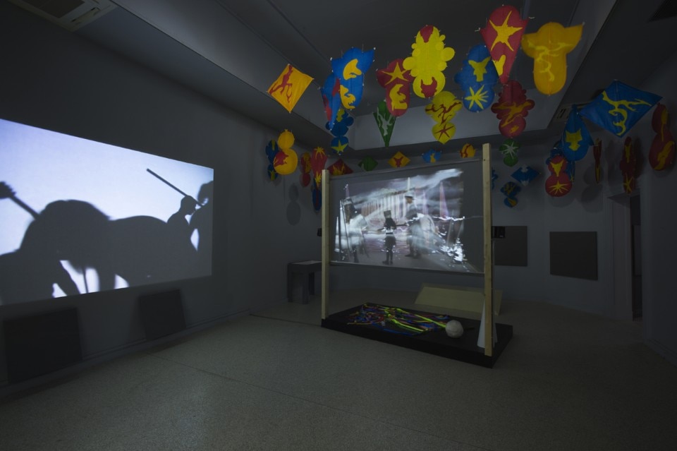 Joan Jonas ha costruito un dispositivo che pur in sintonia con i temi del curatore Okwui Enwezor, è misurato e poetico. Le cinque stanze del padiglione risultano essere un’unica e coerente opera, che riprende i temi di sue precedenti performance, Reanimation del 2010 in particolare, e brani di video di altri momenti del suo lavoro.