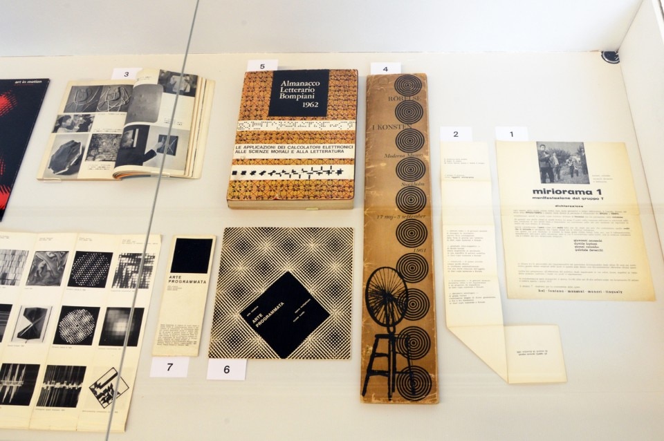 L’Italia stava cambiando pagina anche grazie ad aziende d’avanguardia come l’Olivetti, che non a caso ospitò nel proprio negozio di Milano la mostra “Arte Programmata” a cura di Bruno Munari. Qualcuno si scagliò contro i “motorini” che facevano muovere opere ludiche, impersonali, centrate sull’incontro con la tecnica. Il pieghevole della mostra, con un testo di Eco, era modesto e rivoluzionario al contempo.