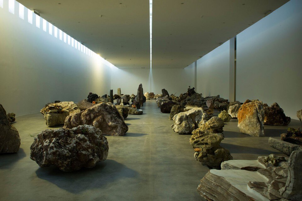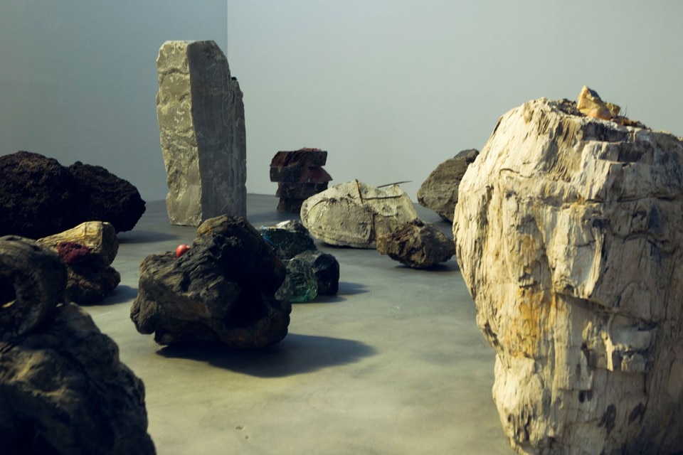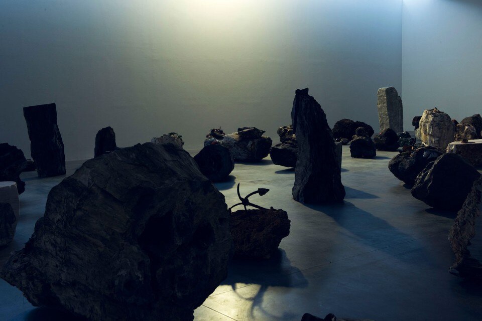 “È un po’ come togliersi il cappello sul pianerottolo o appendere la giacca nel vestibolo”, spiega una giovane guardasala dritta sulla vita e ansiosa di farsi fare il terzo grado sul significato di quelle spoglie di chicchessia e d’ogni discendenza ed estrazione. “L’artista vuole che il visitatore giunga al cuore della mostra nudo”, chiosa a voce bassa, invitando a volgere gli occhi verso, mamma mia, una distesa inconcepibile di un centinaio di madornali pietre vulcaniche, marmi e legni fossili, scuri e circospetti, che Villar Rojas ha ricuperato in un deposito a Istanbul per concertarli nella disadorna sede della Fondazione Sandretto. Orfani d’ogni paesaggio, su questi enormi macigni grava una immobilità e un’apparente immutabilità che fanno pensare a un tempo fermato, remoto.