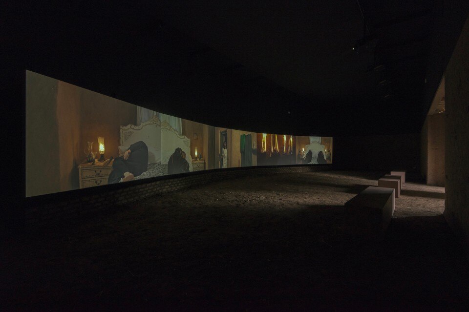 La favola di Nasr The mountain dura 12 minuti, e, se è vero che le opere in video chiedono tempo, qui è ben speso. Siamo – l’odore ci ha portati – in un villaggio agricolo dove la vita scorre lenta, nulla sembra accadere durante il giorno ma la notte tutte le case sono chiuse, nessuno percorre le strade. C’è qualcosa di non detto che si percepisce.