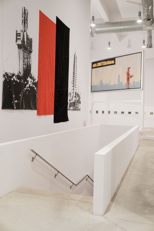 Il campionario degli strumenti della propaganda non poteva che aprirsi con i tanto cari billboard, che l’artista da tempo inserisce sui disegni di architetture trasformandoli appunto in Edificios parlantes. A fare loro da cassa di risonanza ci sono anche due enormi cartelloni pubblicitari metropolitani, sui quali scorrono messaggi e immagini che impiegano un’estetica d’inizio Novecento. Evidente, e ancora una volta preponderante, è il ruolo che Carlos Garaicoa riserva all’architettura, sia come elemento pubblico che dà forma al mondo antropizzato e metropolitano in cui viviamo, sia come espressione dei poteri politico (non solo totalitario, ma anche democratico) ed economico.