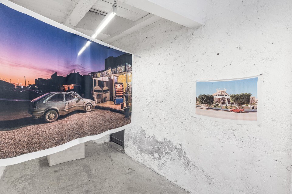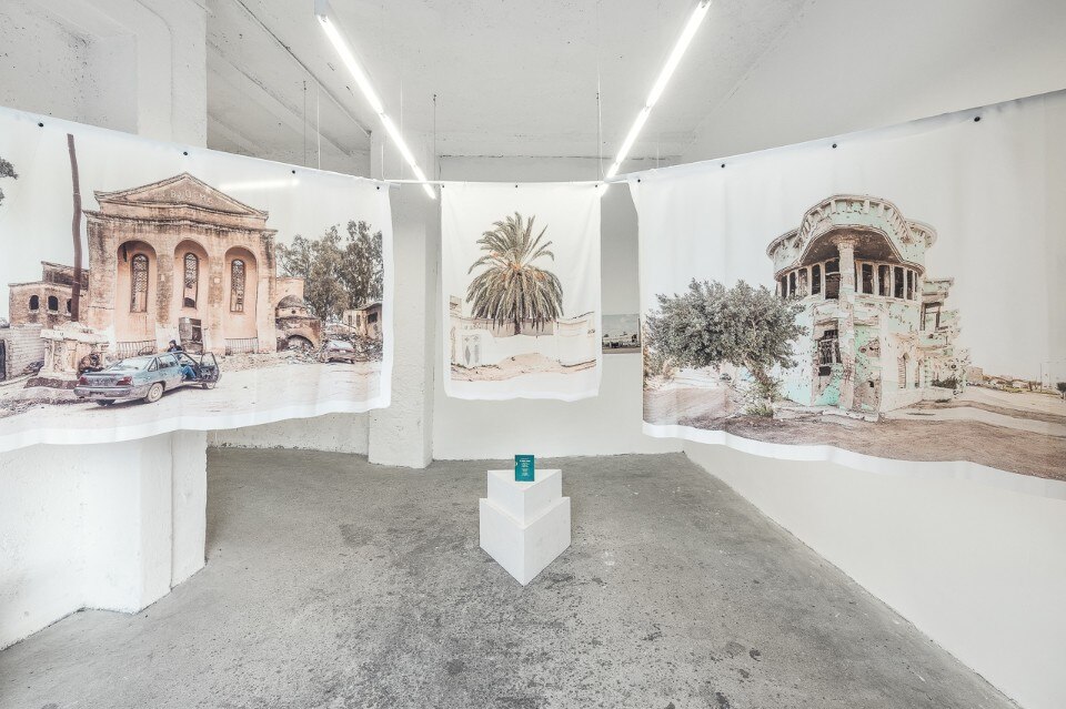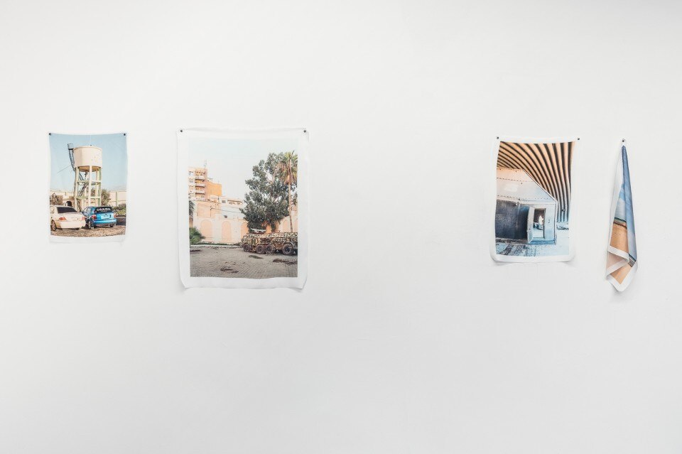 L’incursione si concentra in due tappe: l’area intorno a Bengasi e il territorio tra Tripoli e Misurata. La mostra è un percorso non lineare tra rovine di edifici governativi, architetture coloniali italiane e intere città rimaste incompiute. Il viaggio termina con le fotografie della residenza del Colonnello, il luogo più significativo e suggestivo della sua caduta. Dice Giorgi: “L’installazione nello spazio crea un voluto cortocircuito con le immagini. Alla precisione della fotografia si oppone l’imperfezione della stampa su tessuto in grande formato. Le tende dividono lo spazio, e articolano le relazioni tra il pubblico e le immagini.”