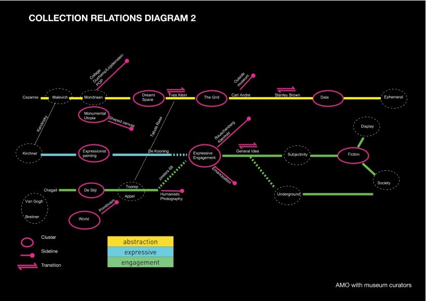 “Un museo è come una città” dice infatti Koolhaas mentre illustra la mappa della disposizione delle opere d’arte, ed è proprio allo Stedelijk che l’architetto ha formato il suo senso estetico dall’età di dodici anni. Nella disposizione, a questo proposito, c’è anche una torretta panoramica che permette di guardare la collezione dall'alto. E questa nuova disposizione dà un'idea di arte contemporanea “totale”, in cui diversi linguaggi – la pittura, il collage, la scultura, il design – parlano la stessa lingua: l’uomo.
