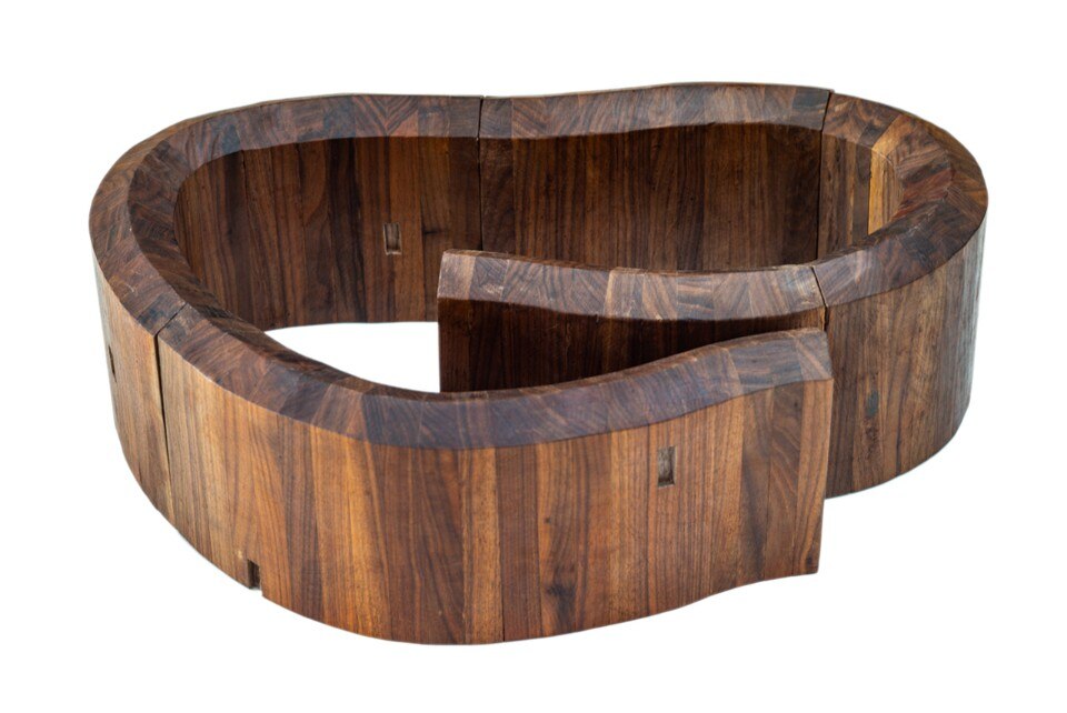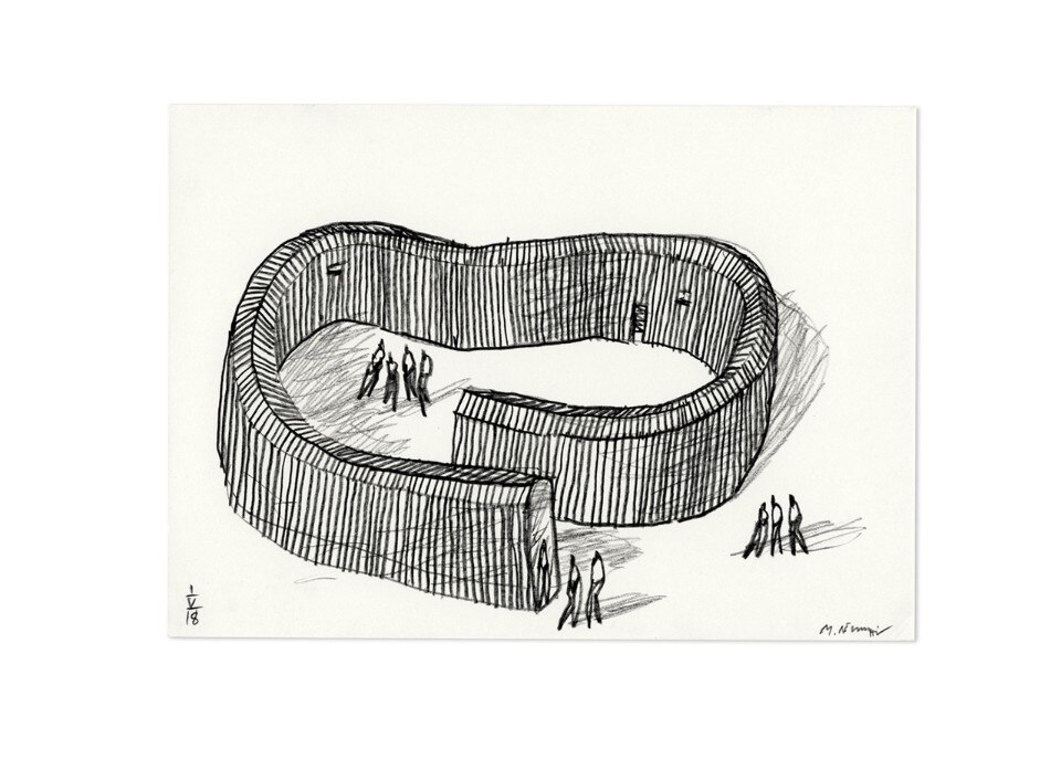 “Dentro Fuori” è il titolo dell’installazione di Michele De Lucchi che viene inaugurata il 24 giugno 2018 a Villa Strobele. L’opera richiama l’immagine del muro che può dividere. Il muro è anche simbolo di protezione: all’interno dei muri delle nostre case ci sentiamo accolti e al sicuro: si può dire che senza i muri non esisterebbero i nostri ambienti di vita. Quando il muro si apre diventa cornice: porta che conduce in un altro ambiente, finestra su un paesaggio naturale o antropologico. La copertura dell’installazione è realizzata con scandole realizzate con la tradizionale tecnica a spacco, l’opera è interamente in larice proveniente dalla Valsugana. Così è descritto nelle parole di De Lucchi: “Il muro Dentro Fuori nasce all’aperto e definisce lo spazio aperto. Respira, lascia che la natura entri al suo interno, non crea ostacoli. È un’architettura libera e libera la mente di chi la percorre. Si muove intorno agli alberi senza intaccarli con la sua presenza, ma includendoli al suo interno. Ha tante aperture piccole e grandi che inquadrano il bosco e le montagne. È un muro nella natura che esalta la natura stessa, la rende più evidente, più amichevole, più a contatto con le proporzioni dell’uomo”.