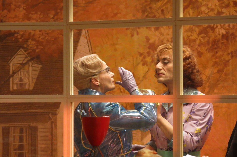 Proprio la libertà è uno dei cardini di questo film. La libertà negata e poi conquistata della protagonista, la libertà di essere ciò che si è perché “nessuno sceglie chi essere o chi amare”. Ma anche la libertà di tenere elementi dello spettacolo teatrale davvero poco cinematografici come la protagonista interpretata da un uomo e la cagnolina Lady, che pur impagliata scompare e rispunta qua ora là. La libertà che, invece, in alcuni casi gli autori si prendono rispetto allo spettacolo, con l’aggiunta di due personaggi che nella pièce sono solo evocati. Il marito Stan (Sergio Albelli) secondo cui “quando la moglie dà retta al marito la vita scorre serena”, un uomo borghese la cui tenuta in giacca e cravatta e il baffetto d’ordinanza nascondono un carattere dispotico e violento. E la madre, o meglio Mother (Piera degli Esposti, spesso presente nel cinema indipendente italiano), che piomba in scena per ricordare alla figlia che senza il marito la moglie è perduta, che se perdi la faccia nessuno potrà mai restituirtela e che sarà bene non sollevare dicerie: meglio fingere, indossare la maschera, perché tanto la vita è una farsa.