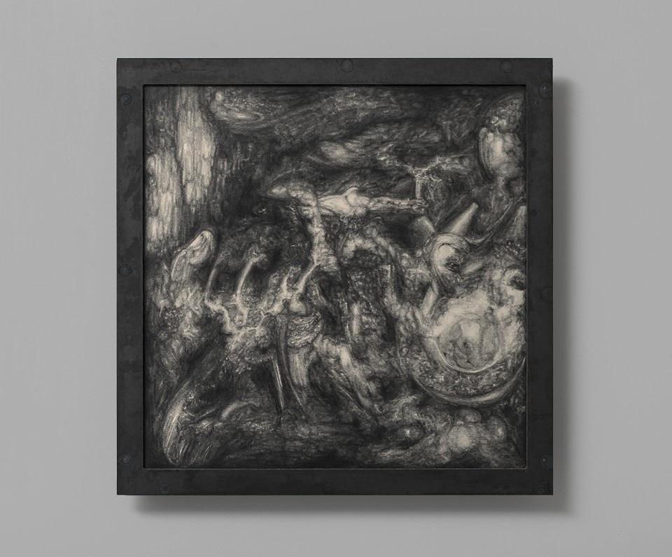 Il percorso, vanta inoltre, all’interno di teche dedicate, una selezione di progetti editoriali e libri d’artista provenienti dalle Collezioni di Diego Bergamaschi e Marco Martini. Gli artisti sono nati tra il 1983 (Andrea Magnani, Faenza. Vive e lavora a Milano) e il 1993 (Diego Gualandris, Bergamo. Vive e lavora a Bergamo), attraverso i loro lavori in via del Vascello, alcuni fra i quali site-specific, la collettiva trova diversi ritmi espositivi. Nata per dimostrare la presa veloce del pensiero sulle analogie create da forme narrative quali fantascienza, fabulazione speculativa e dati scientifici, la mostra delinea codici sintattici dell’immaginazione che spingono, ogni oltre regola, i disegni sull’in-umano introdotti da Benni Bosetto, così come FLX Recorder 1 (2018) e FLX Recorder 2 (2018) di Alessandro Di Pietro. Registratori che rivelano un personaggio indefinito, connotato solamente dalla lunga scia della propria assenza di denotazione.