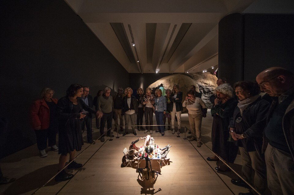 Anche se non urlano come i colori, le composizioni sonore ci accompagnano per tutta la mostra ed è come se c’indicassero la strada, indirizzando il nostro sentire. D’altra parte, che la musica avesse un potere enorme nel costruire attorno a noi un ambiente magnetico lo sapeva già Sant’Agostino che nelle Confessioni parla dei “piaceri dell’udito”, capace d’impigliare e soggiogare gli animi al punto di prendere il sopravvento sulla ragione.