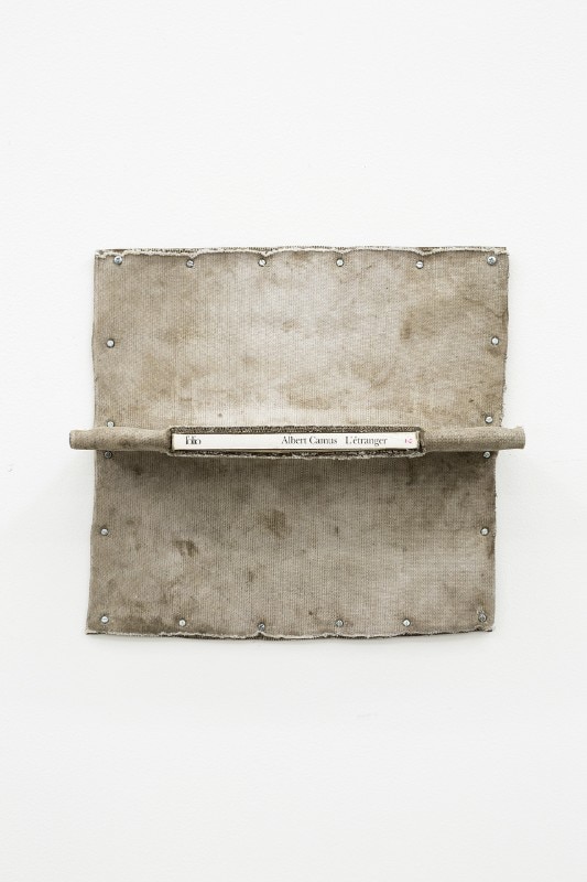 Il tema del trascorrere del tempo è altrettanto presente in un’opera a parete che vede L’Étranger di Albert Camus collocato in un contenitore di cemento. Grazie alla conservazione di questo classico del XX secolo in un materiale a prova di fuoco e di acqua un gioiello letterario viene salvato per le generazioni future.