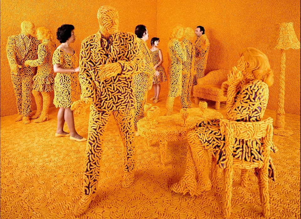 “Ho scattato la fotografia il 22 di dicembre, a pochi giorni dal Natale”, spiega Sandy Skoglund. “Non avrei mai pensato di realizzarla in dieci anni, ma ho avuto diversi blocchi emotivi, il primo era cercare il materiale per fare i fiocchi di neve. Quando lavoro la mia prima domanda, una volta scelto il tema, riguarda il focus e l’idea principale. Sul tema dell’inverno mi sono venuti in mente i fiocchi di neve. In primis li ho realizzati in argilla, perché ho esperienza nella ceramica e mi piaceva l’idea della fragilità, ci ho lavorato per due anni e poi li ho odiati. Ho sperimentato i materiali. Poi ho finito con il tagliare i fiocchi di neve in modo digitale. In un certo senso Winter è un lavoro completamente digitale, ma esiste allo stesso tempo fisicamente”.