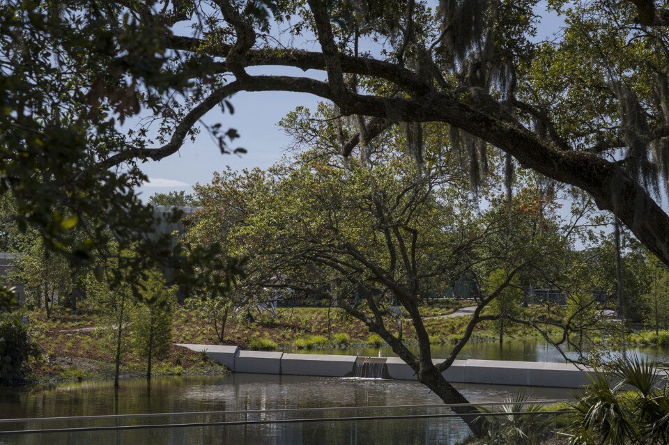 Il sistema lagunare, un elemento centrale dell’espansione del giardino delle sculture, è destinato a svolgere funzioni vitali per l’ecosistema del parco più grande. Il NOMA manterrà la salute e la resilienza del paesaggio impiegando le migliori pratiche di gestione dell’acqua e del suolo, preservando il patrimonio di querce ed estendendo l’adiacente tettoia di quercia viva attraverso il giardino. Queste strategie portano a miglioramenti della qualità dell’acqua e a una ri-ossigenazione in tutto il parco, fungendo da prototipo per progetti simili.