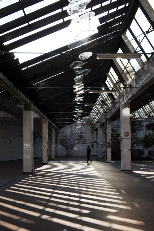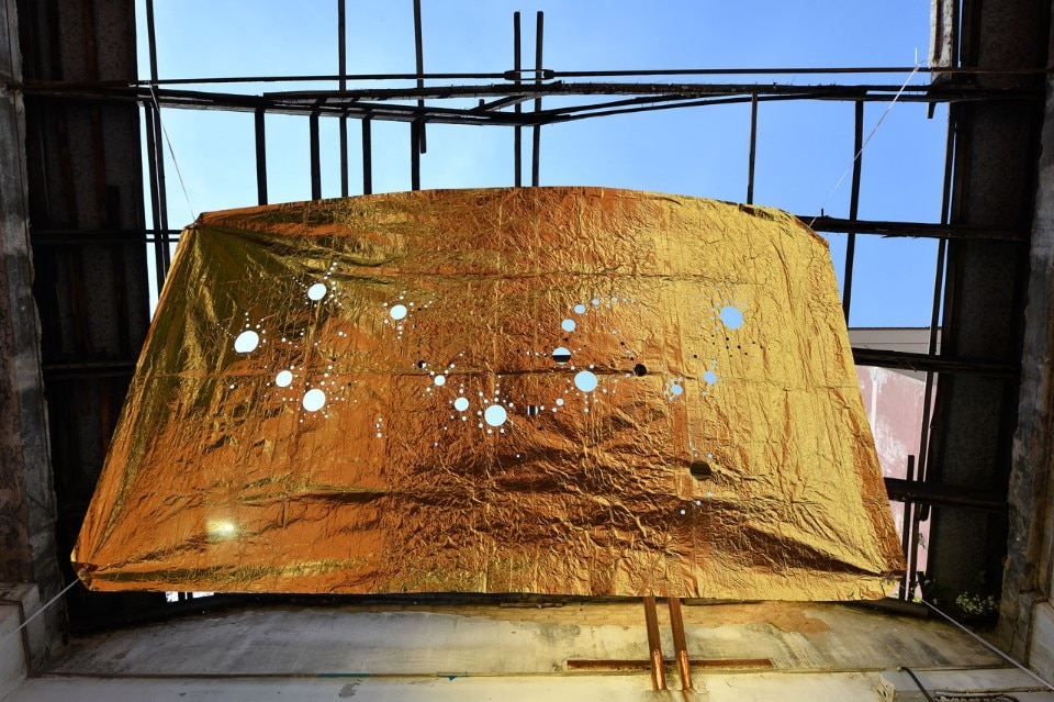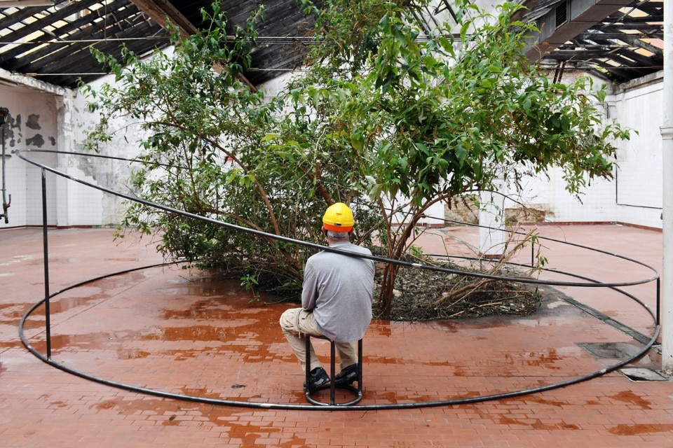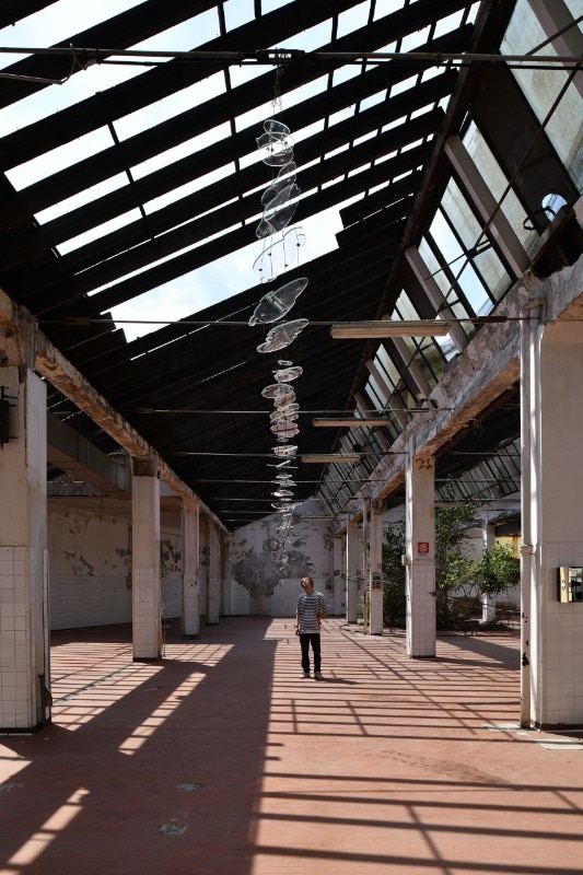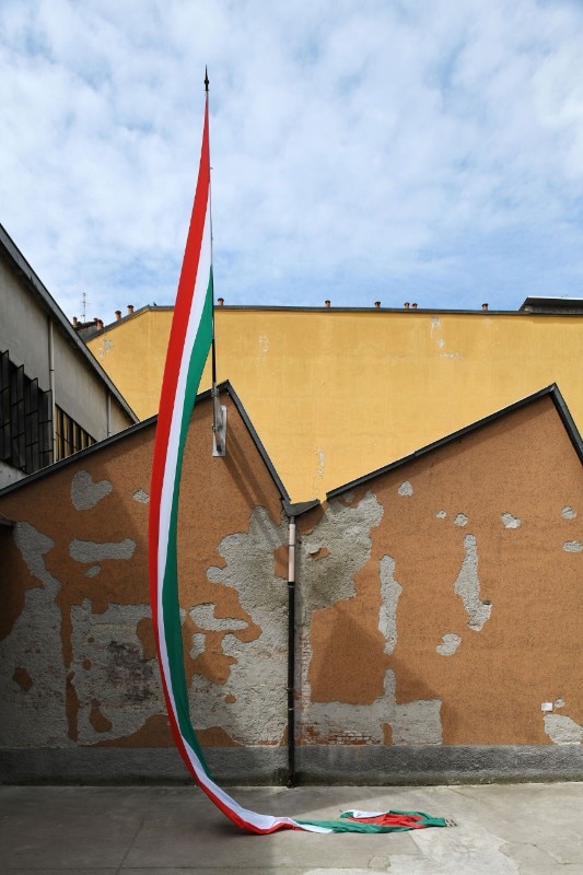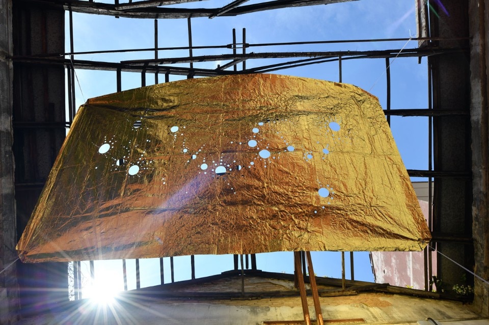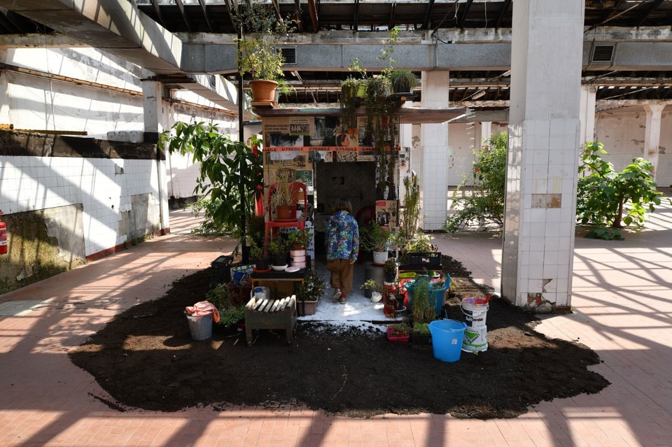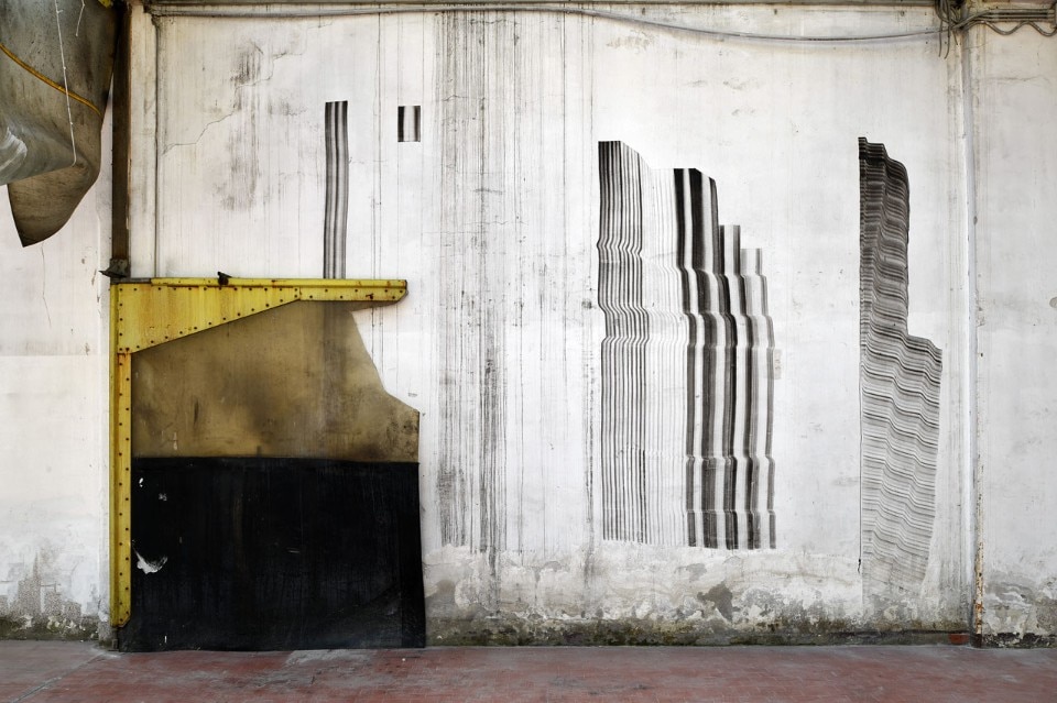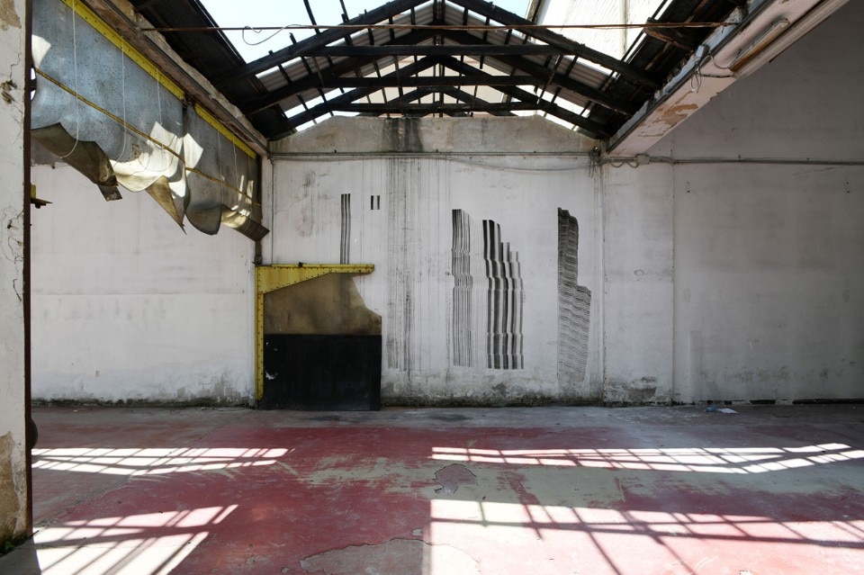 Tra loro c’erano per esempio Adrian Paci che con la sua intelligenza raffinata ci ha regalato un momento poetico indimenticabile, attraverso Il silenzio delle piante l’artista ha infatti delimitato con un perimetro metallico uno spazio che circondava e metaforicamente abbracciava un arbusto (una buddleja davidii anche detta “albero delle farfalle”) cresciuto spontaneamente in questo luogo abbandonato e attraverso un gesto essenziale ma per nulla banale, c’invitava solo a sederci per osservarlo. Stefano Arienti invece ha riproposto un’opera che non a caso aveva realizzato per la prima volta nel 1985 in un contesto molto simile a questo nel già citato quartiere Isola. Muffe è un intervento molto semplice attraverso il quale l’artista colora con dei gessetti quelle parti di muro che si sono ammuffite in giro per gli spazi dell’ex panettonificio. Alessandro Nassiri invece ha portato un lavoro che costringe a una riflessione dura e critica verso noi stessi: su dei vecchi specchi ha infatti inciso delle frasi inneggianti all’odio razziale riprese dai social network, affermazioni dentro alle quali eravamo costretti a specchiarci nell’atto stesso di leggerle. Non poteva mancare Francesco Bertelé che a ben ricordare è stato uno dei primi a lavorare nella zona, aprendo negli anni Duemila la Carrozzeria Margot in via Padova, un artist run space. Per questa occasione ha esposto un’opera suggestiva e drammatica allo stesso tempo. Apocalisse 21,1 era composta da quelle coperte isotermiche che siamo abituati a vedere nelle immagini dei notiziari sui salvataggi dei migranti, qui invece fluttuano a sospese sotto al soffitto ondeggiando sospinte dall’aria, esattamente come fa quel mare che “separa e insieme unisce due mondi”.