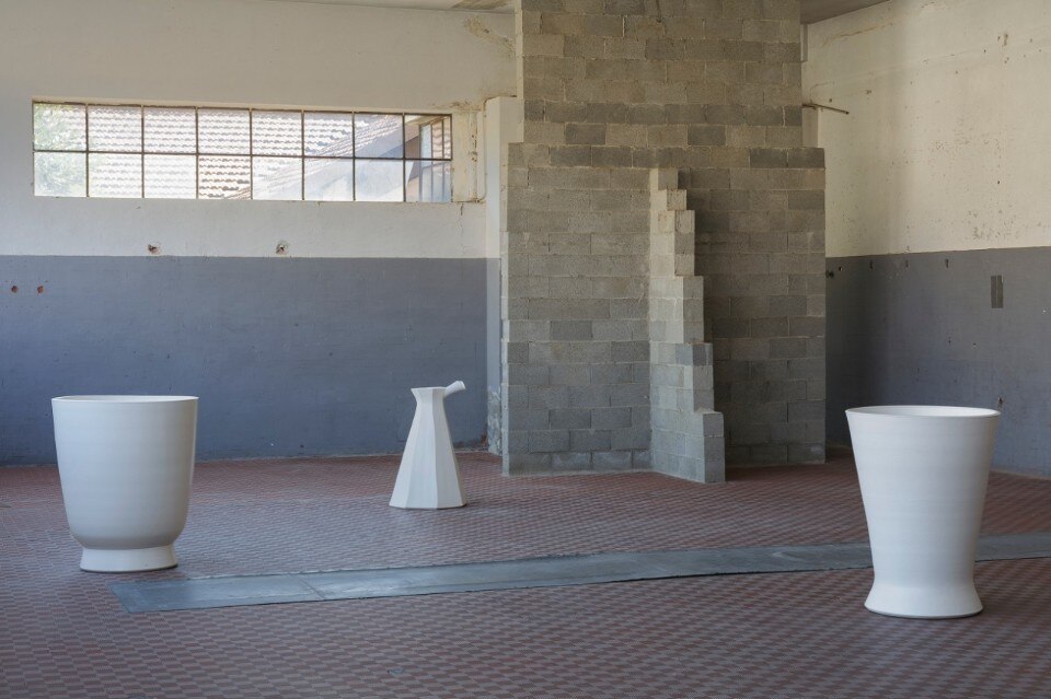 “Ceramics” è una prima sezione di un percorso più ampio dedicato all’utilizzo della ceramica come medium artistico contemporaneo. ICA_Milano lo ha sviluppato attraverso due mostre distinte, una personale e una collettiva. La prima, a piano terra, nell’enorme sala sulla destra, è “Equivalenze” (Equivalence), progetto più recente di Julian Stair (Gran Bretagna, 1955) che indaga la funzionalità degli oggetti quotidiani in rapporto al formato dell’installazione site-specific, rilegge il linguaggio tradizionale della ceramica, celebrandone gli aspetti sociali e culturali.
