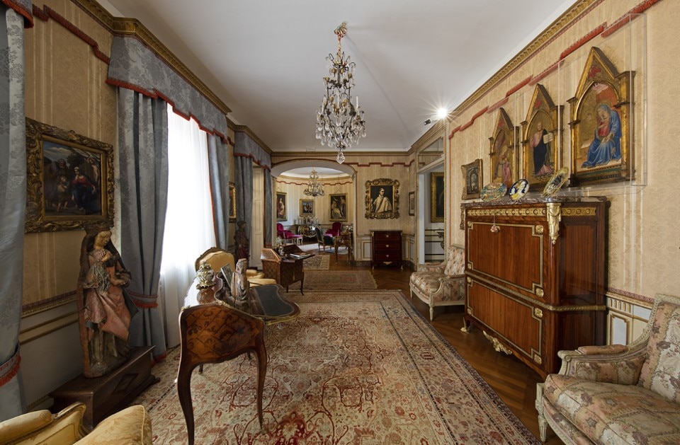 Il ragioniere, così voleva essere chiamato a ribadire le sue origini, era un uomo solitario e discreto ma aveva le idee chiare su quello che era il suo museo personale, nel quale tra l’altro coltivava orchidee. Aveva uno sguardo preciso sulla qualità di ogni singola opera e oggetto, come se avesse una lente che gli consentiva di vedere ciò che era importante nella storia di un artista, periodo storico, manufatto. Una visione bulimica, che va dal Trecento al Novecento, da preziose e rarissime edizioni di libri a mobili barocchi, dalla sala da pranzo con tavolo fatto fare “in stile” e magnifici De Chirico ai fondi oro della stanza che si era fatto costruire nella torre circolare – una di quelle bizzarrie architettoniche di cui sopra – che sembra fosse una sorta di camera della morte, in cui meditare sulla naturale e inevitabile fine dell’esistenza.