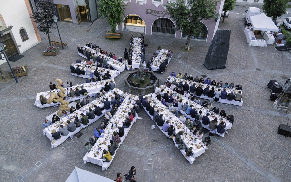 Fabien Vallos, Il dipartimento degli avvoltoi (Departimënt di valtoies), 2018, dalla Biennale Gherdëina VI. Banchetto Pubblico, 23.06.2018 in collaborazione con lo chef Armin Mairhofe.