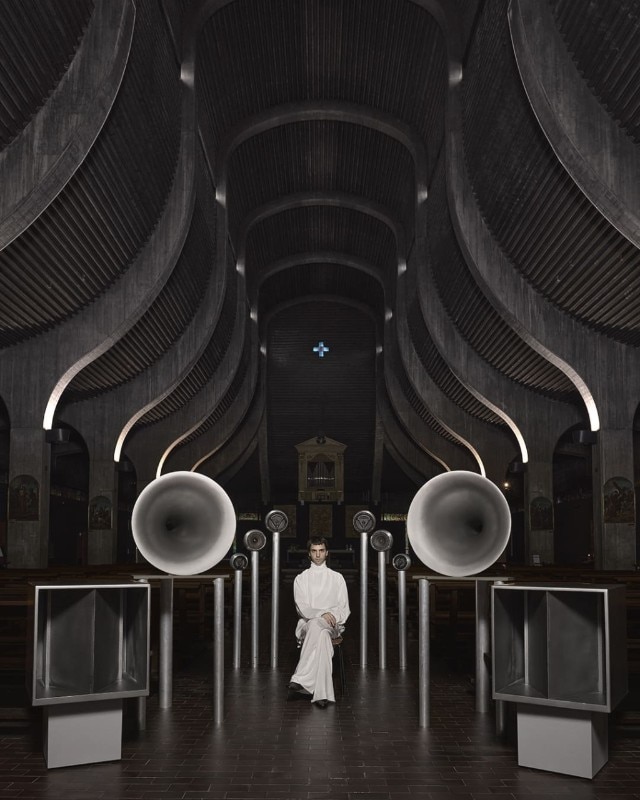 L’impianto consente ai suoni di veicolare attraverso l’ambiente in modo tridimensionale e coinvolgente, offrendo agli ascoltatori una percezione profondamente immersiva. La ricerca sulla qualità e diffusione del suono è infatti al centro dell’opera di Neuf Voix, che in passato già si era avvalso di un’altro ambiente di matrice ecclesiastica – l’auditorium di San Fedele – per una sua esibizione, oltre ad avere preso parte alla Biennale Musica Venezia e una serie di progetti di sonorizzazione dal vivo, come la sfilata FW 24 di Ann Demeulemeester alla Paris Fashion Week.