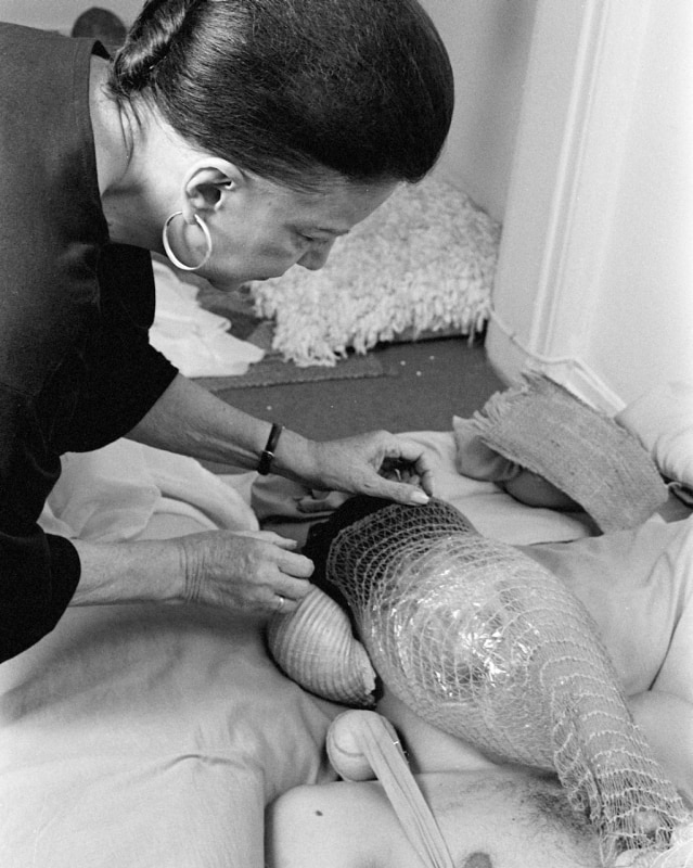 Negli anni Settanta la ricerca di Lygia Clark intraprende una svolta decisiva verso la dimensione intima della terapia. Ispirata anche dalle teorie di Donald Winnicott sugli oggetti transizionali, l’artista sviluppa i suoi Objetos Relacionais: conchiglie, pietre, collant pieni d’acqua, sacchetti, guanti imbottiti con materiali dalle consistenze più varie. Oggetti della quotidianità che, nelle mani dell’artista, diventano strumenti di trasformazione. Utilizzati durante le sedute con pazienti psichiatrici, questi dispositivi miravano a ricostruire un’immagine corporea frammentata, a risvegliare memorie sensoriali dimenticate, a ristabilire la fiducia attraverso il linguaggio immediato e primario del tatto.