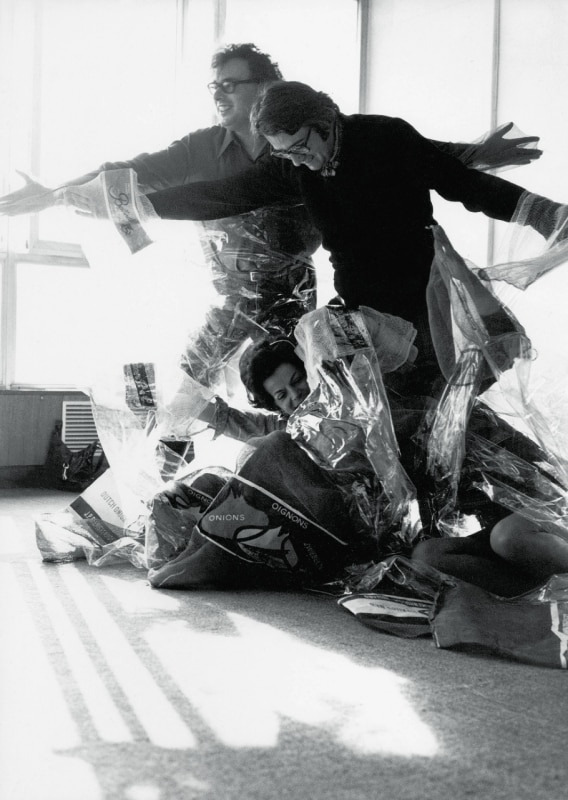 Il 1968 segna un momento decisivo per Lygia Clark, che quell’anno partecipa alla Biennale di Venezia e si trasferisce a Parigi, dove rimarrà in esilio fino al 1974, per via della dittatura militare nel suo Paese. Qui amplia le sue proposizioni in esperienze collettive, che chiama Arquiteturas biológicas. Con materiali poveri – plastiche, elastici, reti – costruisce spazi effimeri, tunnel, bozzoli in cui i corpi dei partecipanti diventano parte dell’opera stessa.