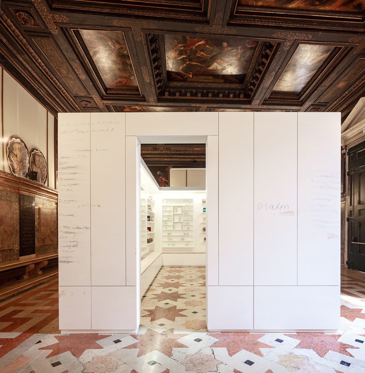 Il secondo capitolo di Psalms si troverà all’Ateneo Veneto, e proprio qui continua la riflessione sull’esilio. Con oltre 60 mila volumi, essa è una delle più importanti biblioteche veneziane. E’ proprio qui che Edmund de Waal sta costruendo un piccolo padiglione all'interno dello spazio principale dell’Ateneo, che ospiterà 2000 libri di scrittori che hanno subìto un esodo forzato, da Ovidio ai giorni nostri.
