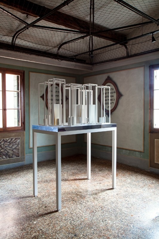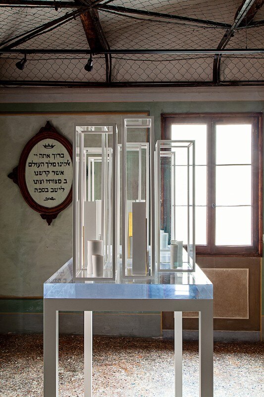 I capitoli e le sedi sono due. La prima, la Scuola Canton, sinagoga di rito ashkenazita fondata tra il 1531 il 1532, ora parte del Museo Ebraico, in Campo del Ghetto Nuovo. Qui de Waal introduce nuove installazioni basate sui Salmi, la poesia dell'esilio, in alcuni degli spazi che vedono ospitare un progetto di arte contemporanea per la prima volta. De Waal articola un percorso di opere, costruite quasi inseguendo la luce naturale che pervade lo splendido edificio, che dal piano terra sale sinuosamente attraverso le scale, lambisce con lo sguardo la dorata sinagoga e raggiunge la vetta dell’edificio, dalla quale si abbraccia una vista su tutto il ghetto nuovo, la parte più antica del quartiere ebraico. Le sue sono sculture, sollevate in un ritmo delicato, fatte di tre materiali: porcellana, alabastro e foglie d’oro. Sono raggruppate in cornici anch’esse rivestite di porcellana, che si reiterano in diverse grandezze, scandendo un ritmo che accompagna lo sguardo attraverso scorci del museo mai aperti prima.