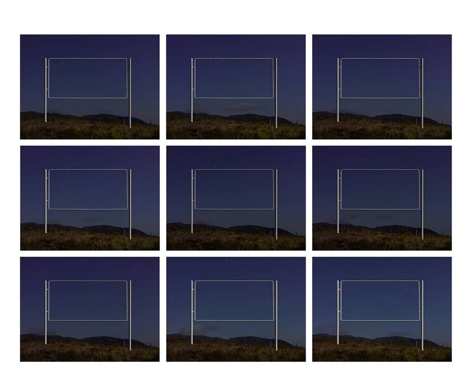 A Latronico l’autore ha installato un cartellone in mezzo al paesaggio aperto, convertendo il supporto pubblicitario in una grande cornice di 6x3 metri che definisce uno scenario in continua evoluzione.
