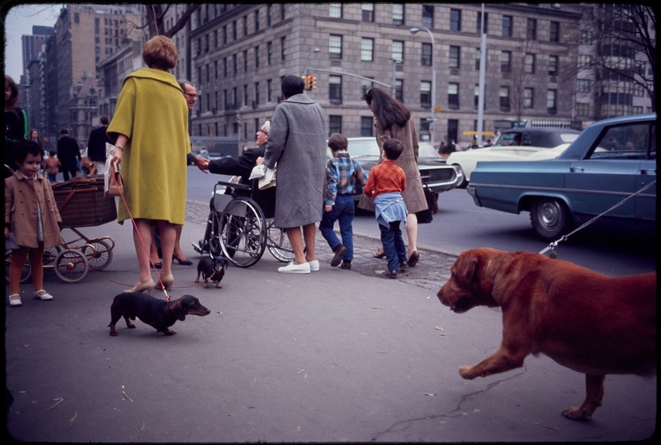 Celebre infatti più che altro per le sue immagini in bianco e nero, esposte tra l’altro al MoMA assieme a quelle di Lee Friedlander e Diane Arbus nell’influente New Documents del 1967, Winogrand fu tra i primi sperimentatori e sostenitori delle pellicole a colori commerciali come la Kodachrome, quando queste venivano considerate adatte giusto agli album di famiglia o al massimo prerogativa dei fotoamatori.