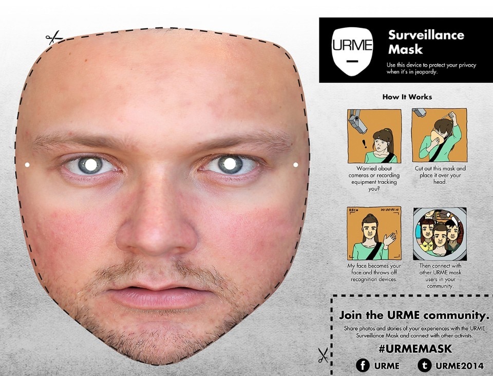 Leo Selvaggio va ancora oltre, e invita il pubblico a mettere in crisi i sistemi di sorveglianza attraverso l’uso di una serie di mascheramenti — tridimensionali, cartacei, virtuali — che riproducono le sue stesse sembianze: nel momento storico in cui il computer esercita la sua massima (fin ora) interazione con e influenza sull’uomo, l’arte scende allora in strada e si fa baluardo della privacy dei cittadini, mettendoci anche la faccia.