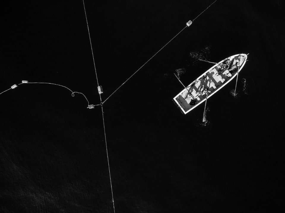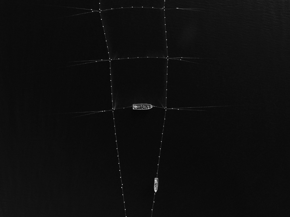 Per tornare al tema dei punti di vista, guardando le foto scattate col drone vengono in mente progetti tracciati in negativo, ma anche disegni e opere monumentali del passato, le cui pratiche risultano ancora in parte misteriose: quanto ha influito sul tuo lavoro la consapevolezza di essere alle prese con la documentazione di una tecnica di pesca che affonda le sue radici in un passato per molti versi ancora oscuro?