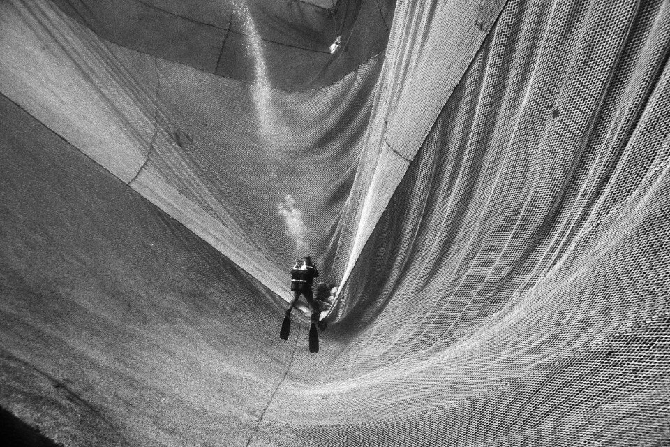 Ho cercato diversi artifici per indirizzare la narrazione visiva di una realtà presente verso una prospettiva diacronica. Il bianco e nero, con l’implicito rimando al passato e al documento sintetico, le diverse prospettive che hanno dato voce, come in un coro, a diversi protagonisti della vicenda narrata (i tonni sott’acqua, i pescatori sulle barche e in ultimo i gabbiani che dall’alto seguono opportunisticamente le operazioni di pesca), il ritmo e l’alternanza di queste visioni soggettive. Poi credo abbia contribuito in modo significativo la scelta di non mettere l’accento sulla mattanza, momento apicale di un complesso atto di conoscenza della natura da parte di questa sapiente comunità di pescatori, bensì sulla relazione tra lo spazio della natura e quello dello strumento, ovvero la tonnara intesa come trappola e anche come prova fisica del contrastato e mai scontato rapporto tra uomo e natura.