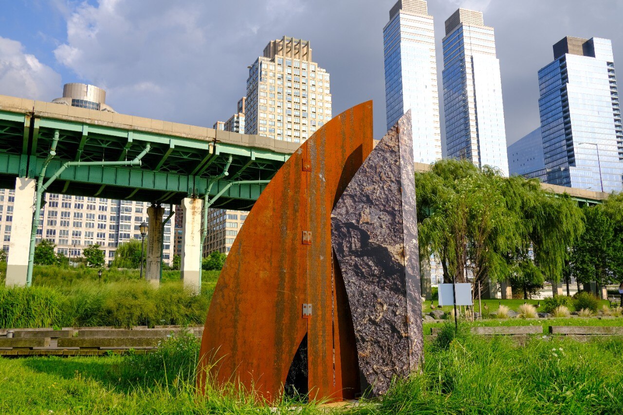 “Ho fatto una mostra simile qui nel 2006”, mi dice, spiegandomi che durante la pandemia, in inverno, camminava nel parco – abita qui vicino – “pensando a come rifarla”. Se nessuno entra in una galleria a causa del Covid, portiamo l’arte fuori, ha pensato. E così inizia a lavorarci, scrive alla conservancy di Riverside Park per ottenere i permessi, esplora il parco, manda foto agli artisti che non possono essere qui a causa della pandemia. “Era un bel regalo da fare a New York”.