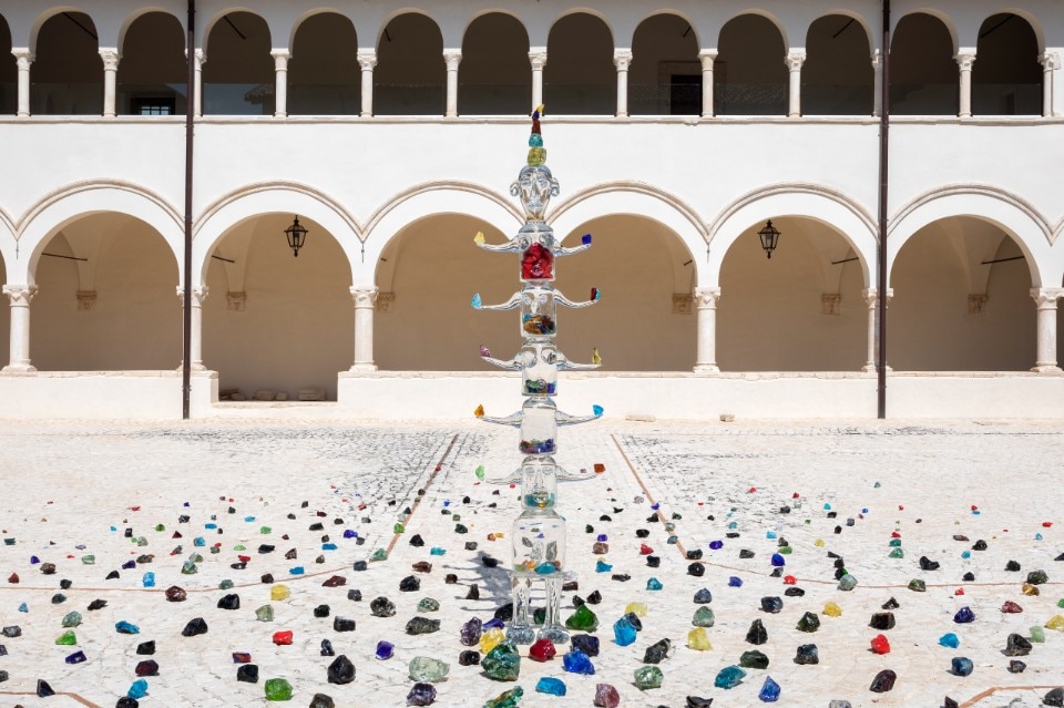 Nato il 25 aprile 2020 da un’idea di Lorenzo Fiaschi, di Galleria Continua, e Pepi Marchetti Franchi, di Gagosian, quest’originale pseudo-collettivo – formato da diverse e ben distinte individualità – mira a dare corpo a progettualità che permettono l’incontro tra l’arte, il patrimonio culturale e paesaggistico italiano e comunità. In questa cornice si inserisce proprio Panorama, l’appuntamento annuale di punta di Italics, che quest’anno, dopo le precedenti edizioni svoltesi a Monopoli (2022) e Procida (2021), ha scelto di estendersi, tentacolare, nel centro storico de L’Aquila.