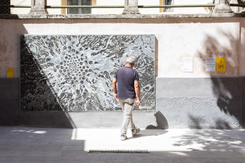 Sono state parole semplici quelle pronunciate dalla signora aquilana. Eppure, nella corsa tra una sede e l’altra, diventano spunto di riflessione sull’impatto generato dalla manifestazione. Sono significativi i due interventi che verranno donati dagli artisti alla città e al Museo Nazionale d’Abruzzo (MuNDA): l’espressivo mosaico in esterno dalle linee dinamiche Enigma della Materia (2023) di Alberto Di Fabio e l’opera di Gianni Caravaggio, una bandiera scevra da ogni nazionalismo ed egemonia che solo si identifica con i colori del paesaggio appenninico che circonda e sorregge la città (Bandiera naturalizzata, L’Aquila, 2023).