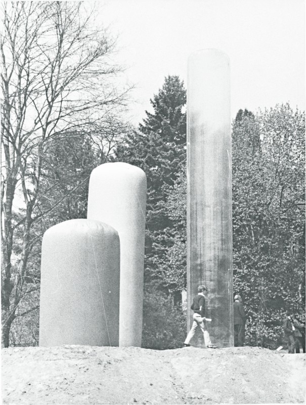 Farà seguito, ci racconta la mostra, la realizzazione di progetti effimeri che “invitano a smettere di pensare unicamente in termini di edificio”, tra cui rientra il suo ufficio gonfiabile in pvc trasparente, incredibilmente attuale in anni pandemici e di telelavoro. Allo stesso tempo, Hollein sperimenterà forme inconsuete e decorative – come per la facciata in alluminio spazzolato del negozio viennese di candele Retti – esposta da “transFORMS ” attraverso una prodigiosa sequenza di maquette di vetrine che includono anche una tabaccheria e la gioielleria Schullin a Vienna.