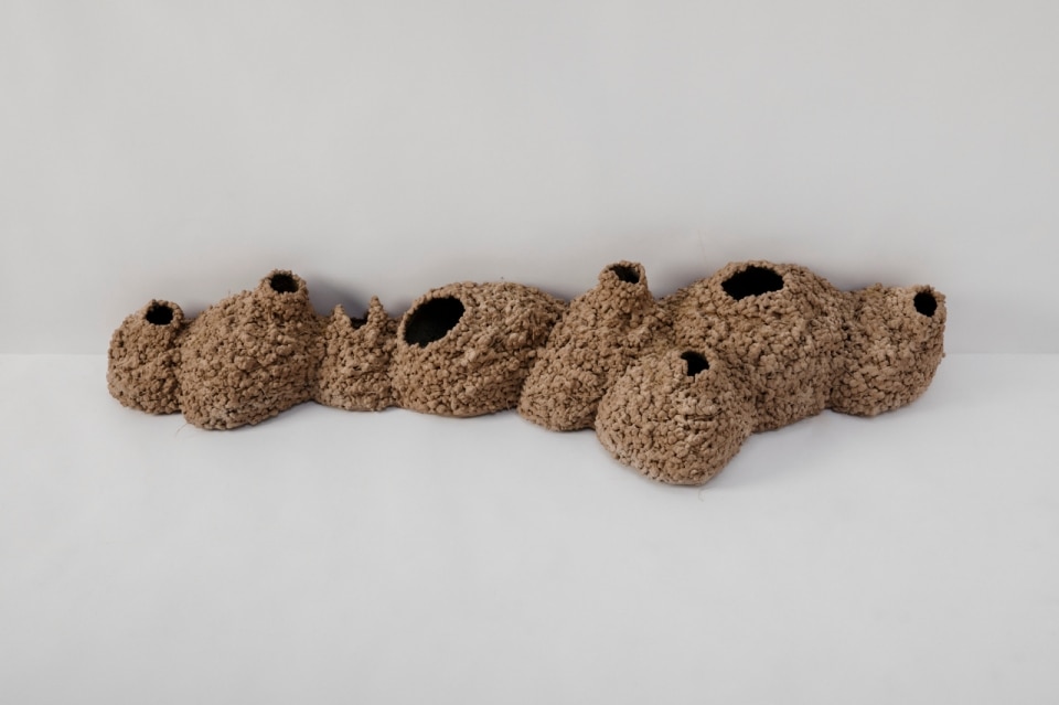 Un altro aspetto interessante di questa operazione museale, direttamente legato alla scelta etica e tematica della sostenibilità, riguarda le conseguenze pratiche che essa produce nel modo di costruire una mostra. Ridurre i trasporti significa cercare opere e materiali nel raggio geografico più vicino, e infatti molti dei lavori provengono da pratiche attive nei Paesi Baschi o in regioni limitrofe. Le ceramiche di Mar de Dios, ottenute da fanghi della Biscaglia, e i moduli di David Bestué, realizzati con i sedimenti della ría del Nervión, sono solo due esempi. È uno spostamento di priorità che produce un effetto interessante: nel tempio firmato da Frank Gehry, tradizionalmente associato ai grandi nomi della scena internazionale, convivono ora artisti storici e artisti locali, giovani e maestri, delineando un orizzonte molto più ampio e paritario rispetto agli standard dei musei globali.
