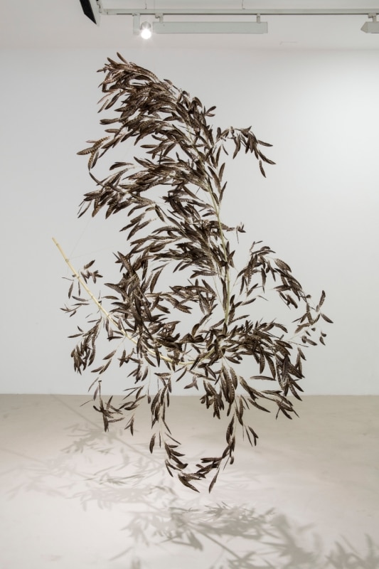 Il percorso si apre con alcuni antecedenti storici fondamentali: i collage vegetali di Jean Dubuffet, gli erbari di Joseph Beuys, le pitture su corteccia di Jimmy Lipundja, legate alle cosmologie del nord dell’Australia. Opere che mostrano come il rapporto tra arte e suolo non sia affatto recente, ma riemerga ciclicamente nella storia dell’arte contemporanea. Negli anni Settanta, figure come Ana Lupas, Fina Miralles o Meg Webster iniziano a usare materiali deperibili — paglia, terriccio, sabbia — costringendo già allora i musei a misurarsi con opere che mutano, si trasformano, si degradano. Hans Haacke ripropone i suoi esperimenti sulla crescita delle piante nello spazio espositivo, mentre, più di recente, Isa Melsheimer racchiude vegetazione viva in piccole serre di vetro che definisce “capsule del tempo”: micro-ecosistemi raccolti all’esterno e ora in grado di sostenersi da soli.