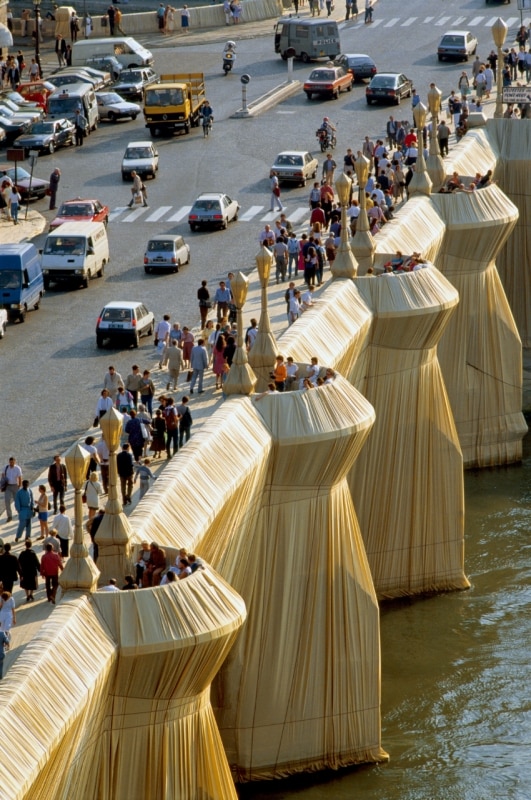 Il ponte più antico di Parigi ricoperto da oltre 40mila metri quadrati di tessuto, con archi, parapetti e lampioni trasformati in una scultura monumentale, attraversabile, morbida e luminosa. Questa descrizione riporta inevitabilmente al 1985 e alle immagini dell’inaugurazione di The Pont Neuf Wrapped, una delle opere più iconiche di Christo e Jeanne-Claude, gli artisti dell’impacchettamento che trattarono per più di dieci anni con il Comune di Parigi per avvolgere il Pont Neuf sulla Senna.