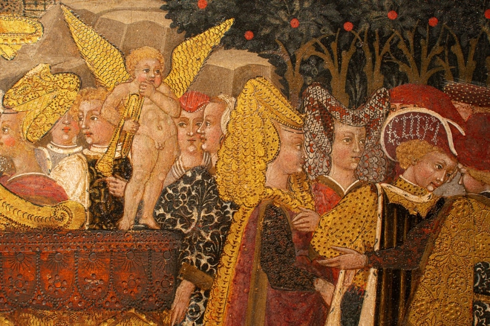 Commissionati dai nobili agli artisti, i primi mazzi sono piccoli oggetti di lusso: carte dipinte a mano, spesso con fondi dorati e tecniche simili alla miniatura medievale. La struttura del mazzo è già molto simile a quella odierna, ma i temi variano da regione a regione. A nord delle Alpi, per esempio, compaiono scene di caccia e falconeria — in mostra c’è un rarissimo mazzo proveniente da Vienna che mostra levrieri e cavalieri in inseguimento. In Italia, invece, il simbolismo medievale si intreccia con la cultura classica, la religione e il linguaggio figurativo del Rinascimento.
